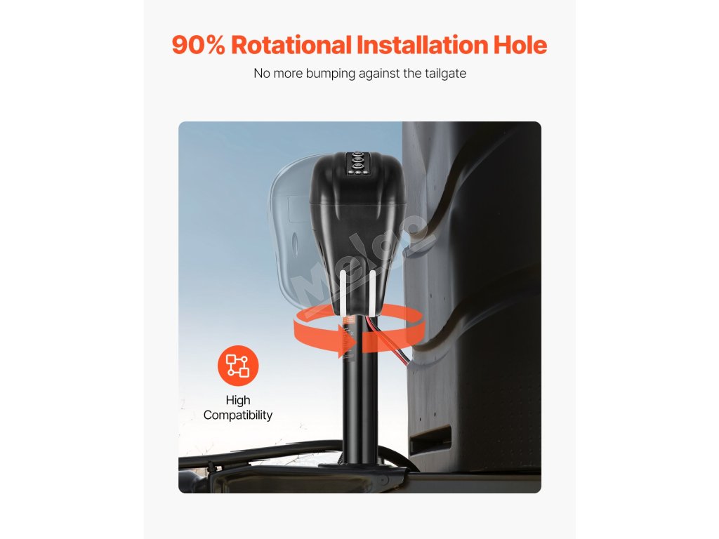 Vďaka zdokonalenému otočnému montážnemu otvoru elektrický zdvihák prívesu nezasahuje do zadných dverí. Vhodný pre prívesy pre obytné vozidlá, prívesy pre kone, úžitkové prívesy a ďalšie.