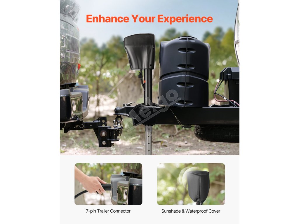 Elektrický zdvihák jazyka prívesu sa dodáva v zosilnenom štandardnom balení, aby sa predišlo poškodeniu počas prepravy. Jeho súčasťou je nepremokavý kryt so slnečnou clonou, ktorý zabezpečuje proti vode a UV žiareniu, s vodotesnou konštrukciou, aby odolal vonkajším vplyvom.