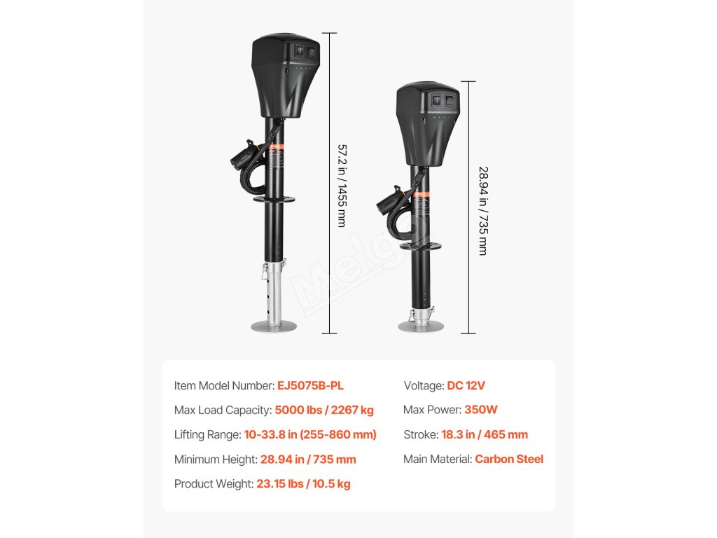 Elektrický zdvihák ťažného čapu 5000 lbs, 7-pin, 10"-28.3", s kľukou
