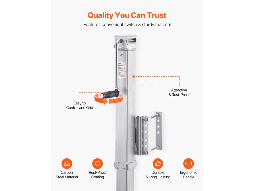 Náš zdvihák prívesov má silnú nosnosť a ergonomickú rukoväť na ľahké zdvíhanie prívesov. Je vyrobený z materiálu z uhlíkovej ocele a má antikoróznu povrchovú úpravu, čo zaručuje jeho dlhodobé používanie!