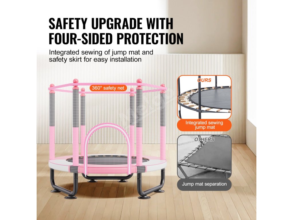 Podložka na skákanie je integrovaná s bezpečnostnou lištou a zvýšená ochranná konštrukcia zaisťuje stabilitu pri tlaku, čo umožňuje väčšiu nosnosť a znižuje riziko zlomenia, čím je zaistené, že každý skok je pre deti bezpečný.