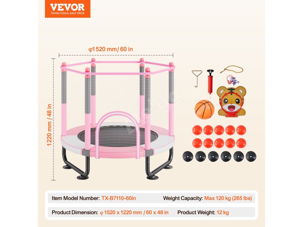 Naša mini detská trampolína pre batoľatá obsahuje príslušenstvo, ako je závesná basketbalová obruč a lopta, čo umožňuje basketbalovú a skákaciu zábavu kdekoľvek, či už v interiéri, exteriéri, na záhrade alebo na dvore.