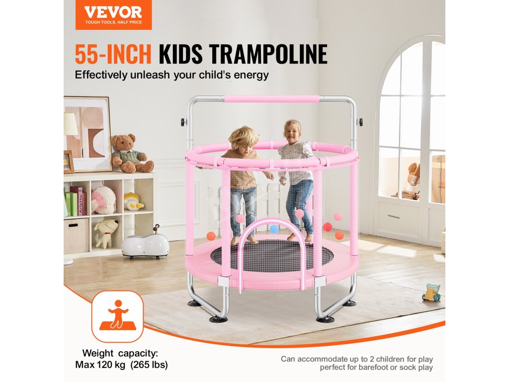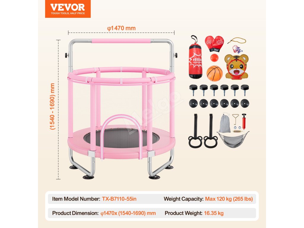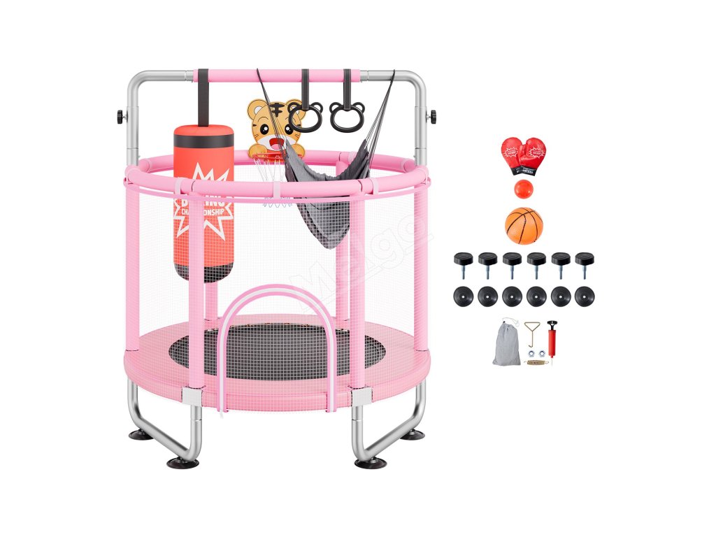 Detská trampolína 55" 4.6ft s ochrannou sieťou a basketbalom, ružová