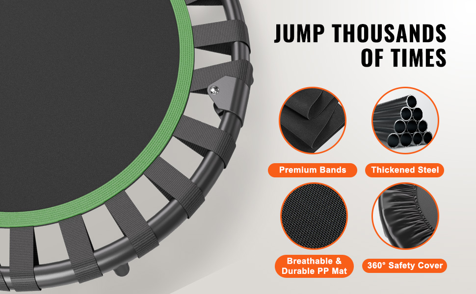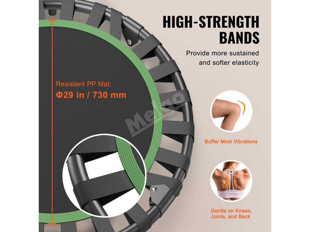 Táto mini trampolína, vyrobená zo zosilnenej ocele a vybavená 24 odolnými napínacími pásmi, zaručuje konzistentný a spoľahlivý výkon počas každého tréningu.