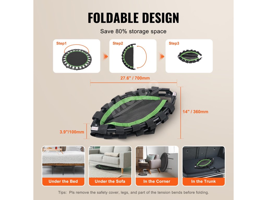 Skladací mini trampolína 36 inch, nosnosť 220 lbs, tichá pre dospelých