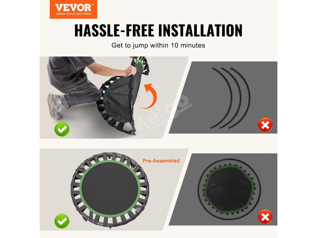 Začnite skákať rýchlejšie vďaka bezproblémovej montáži. Cvičebná trampolína sa dodáva čiastočne zmontovaná, vďaka čomu ju môžete mať kompletne nastavenú a pripravenú na používanie už za 10 minút.