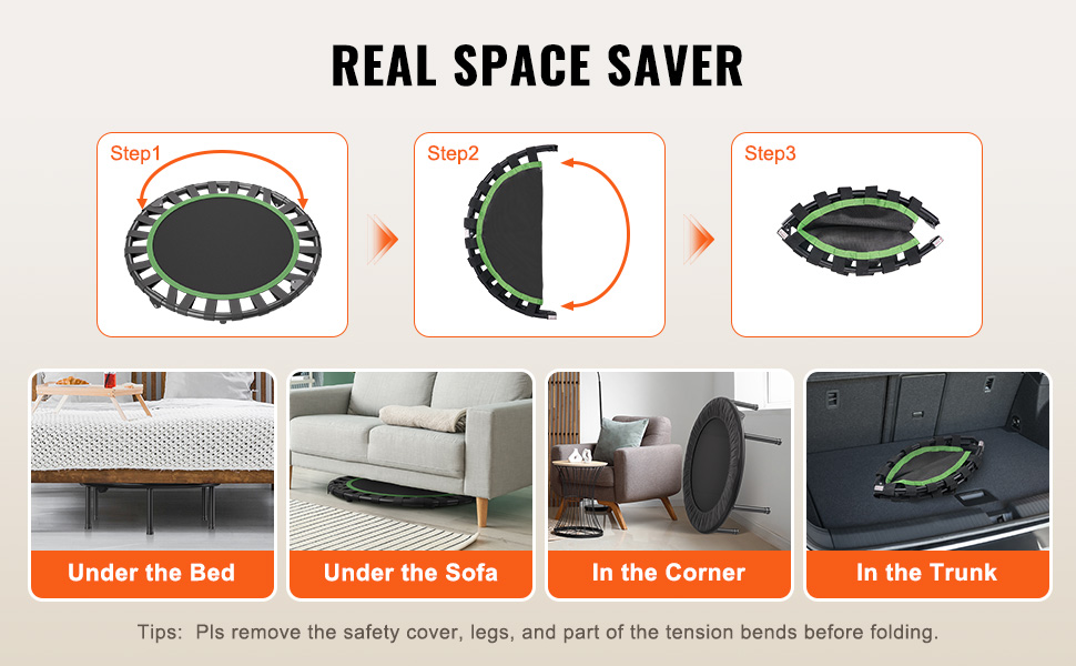 Optimalizujte si úložný priestor vďaka fitness odrážadlu, ktoré sa zloží na 80 % svojej pôvodnej veľkosti. Ľahko ho uložíte pod posteľ, pohovku, do rohov alebo dokonca do kufra auta.