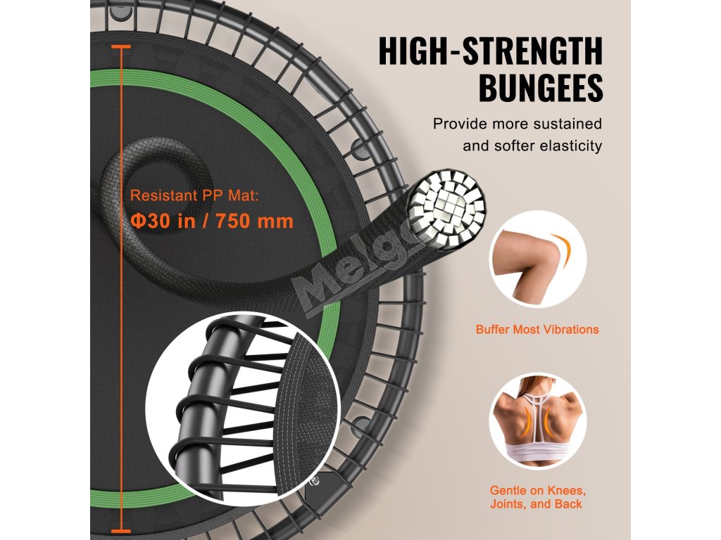 Vychutnajte si predĺžený a mäkší odraz vďaka nášmu robustnému systému bungee. Absorbuje väčšinu nárazov, čím ponúka jemné cvičenie, ktoré je šetrné k vašim kolenám, kĺbom a chrbtu.