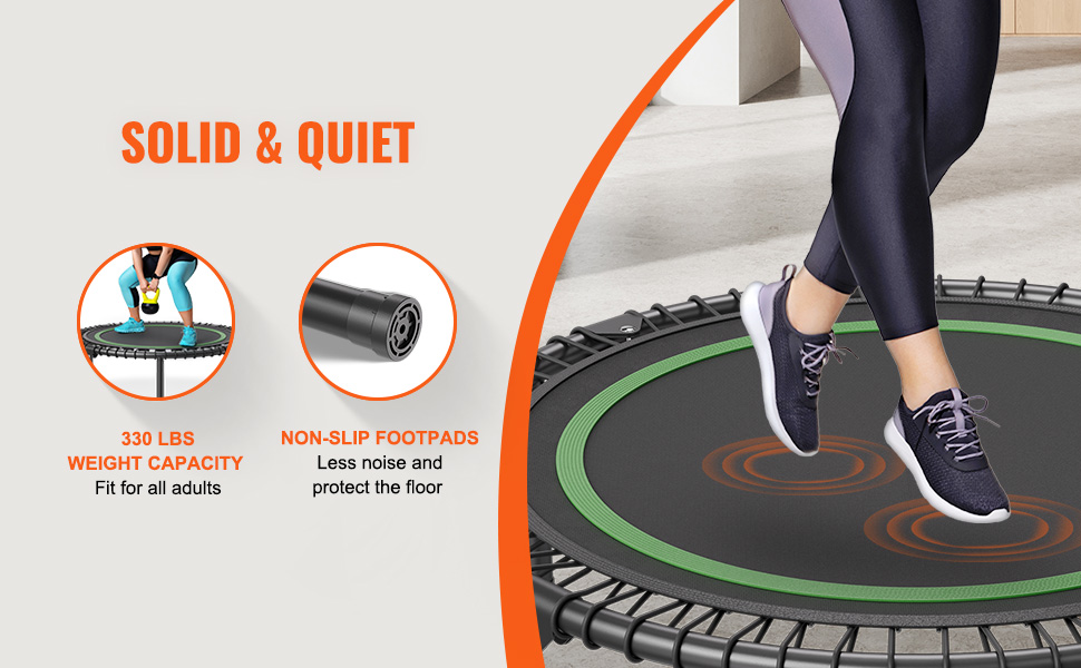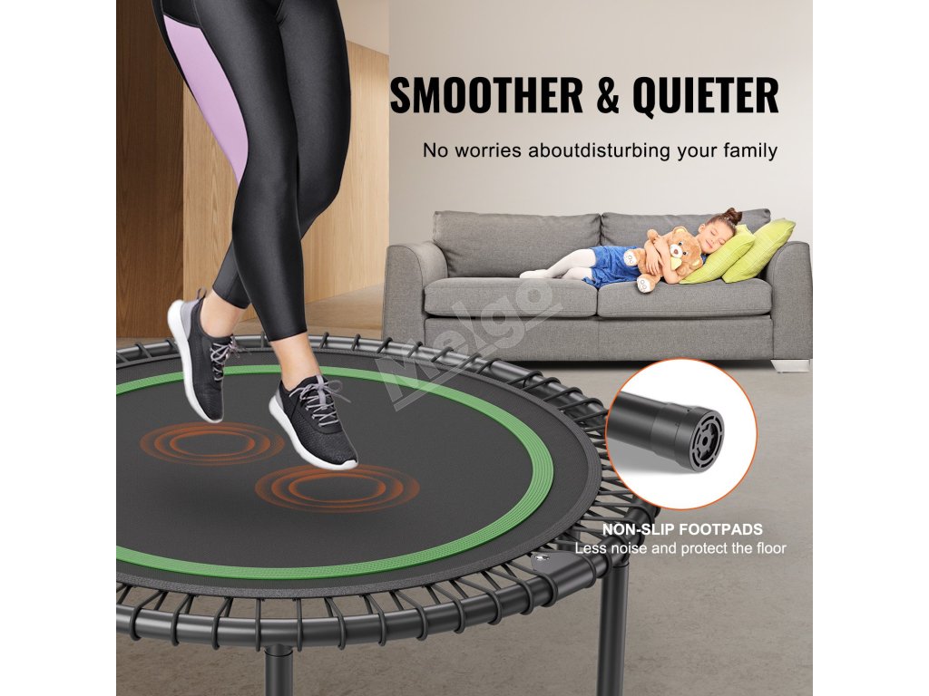 Cvičte v pokoji s fitness odrážadlom, ktoré je navrhnuté na tichú prevádzku. Protišmykové podložky pod nohy znižujú hluk a chránia vašu podlahu.