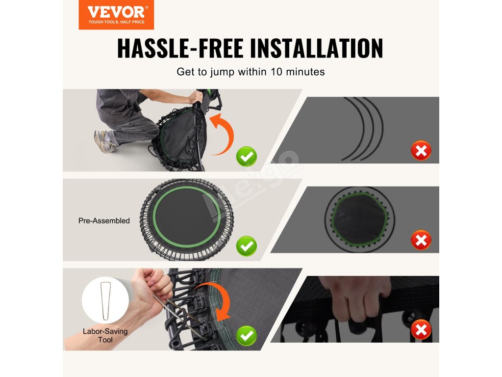Začnite skákať rýchlejšie vďaka bezproblémovej montáži. Cvičebná trampolína sa dodáva čiastočne zmontovaná, vďaka čomu ju môžete mať kompletne nastavenú a pripravenú na používanie už za 10 minút.