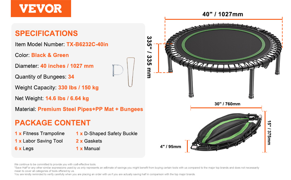 Skladací mini trampolína 40 inch, nosnosť 330 lbs, pre dospelých