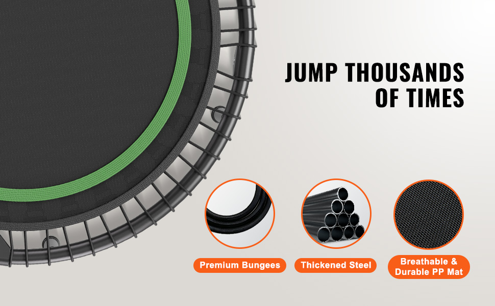 Táto mini trampolína, vyrobená zo zosilnenej ocele a vybavená 34 odolnými popruhmi, zaručuje konzistentný a spoľahlivý výkon počas každého tréningu.