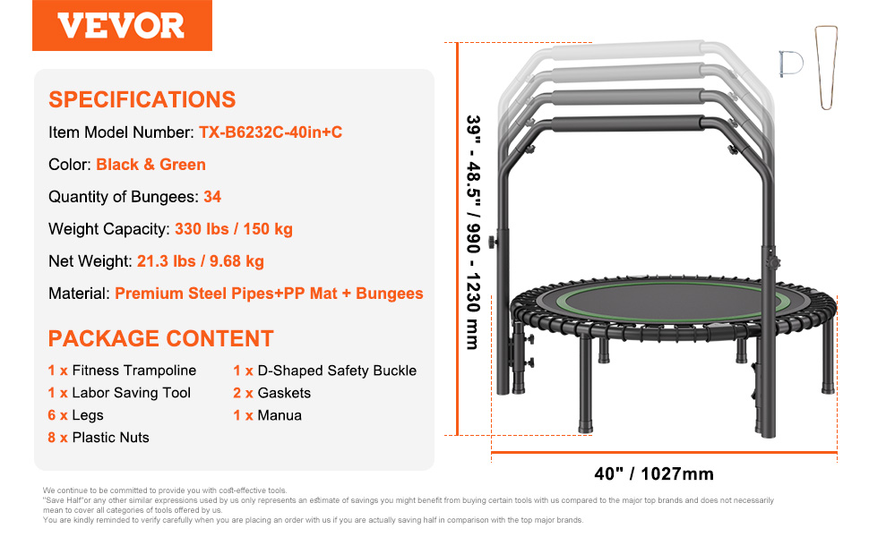 Skladací mini trampolína 40 inch nosnosť 330lbs, 4 polohy penové madlo