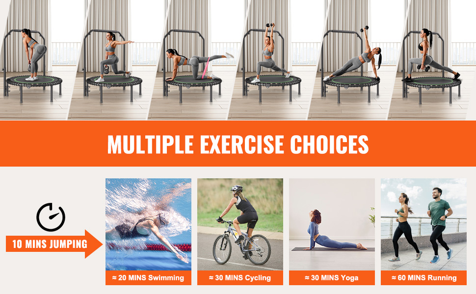 Nájdite si ideálnu výšku odrazu pomocou rukoväte interiérovej trampolíny, ktorá sa nastavuje do 4 rôznych úrovní od 39 do 48,5 palca. Prispôsobte si výšku svojmu pohodliu a optimalizujte svoj tréningový výkon.