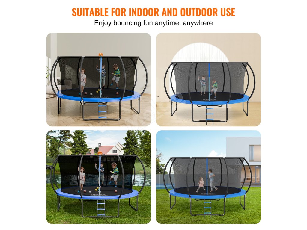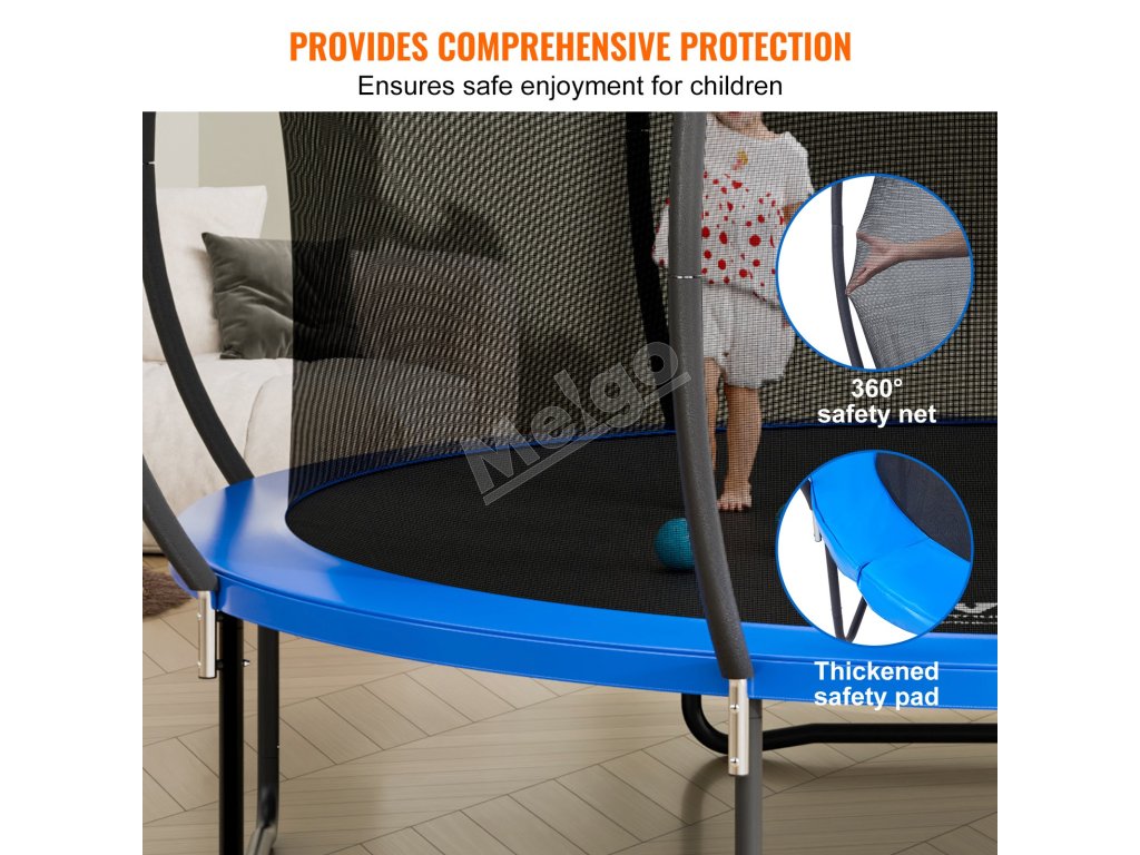 Vďaka 360° ochrannej sieti, nárazuvzdorným nárazníkom a zosilneným bezpečnostným podložkám absorbujúcim nárazy poskytuje táto rekreačná trampolína komplexnú ochranu, ktorá zabraňuje zraneniam detí.