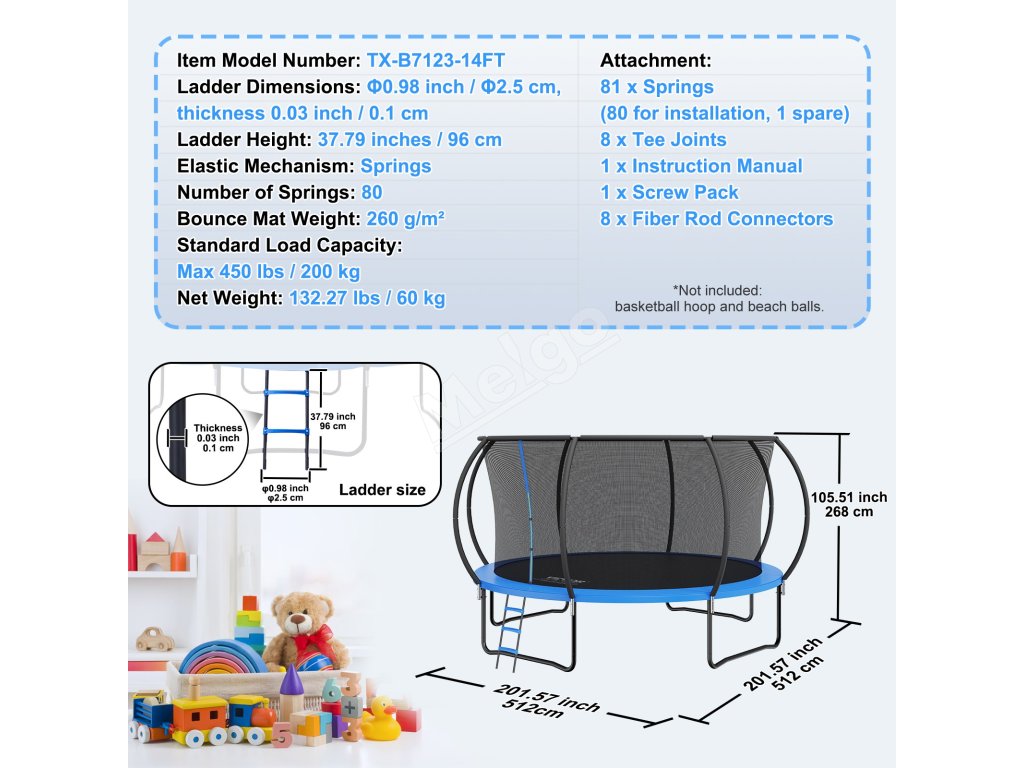Trampolína 14ft s ochrannou sieťou a rebríkom, nosnosť 450 lbs