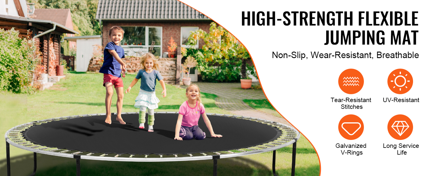 Táto prémiová okrúhla trampolínová podložka sa široko používa v trampolínach v domácnostiach, školách, parkoch a na ihriskách a pomáha zlepšovať skákacie schopnosti detí.