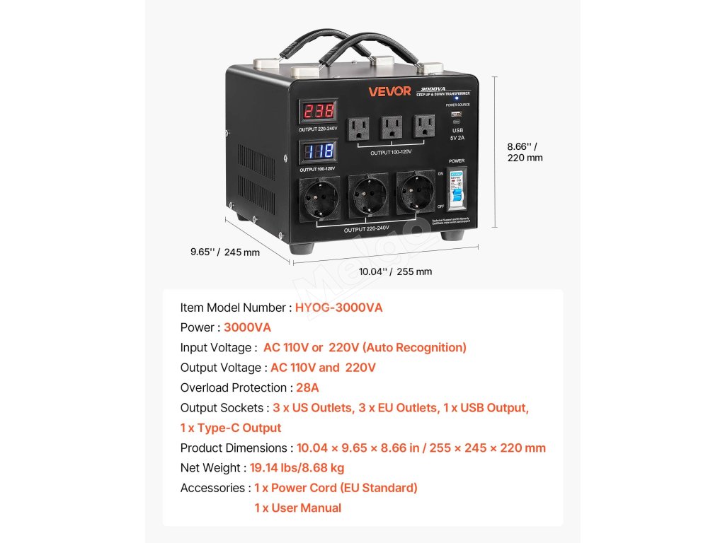 Už žiadna nekompatibilita napätia s dovážanými a zahraničnými zariadeniami. Automaticky rozpozná vstupné napätie a správne nastaví výstupné napätie. Obsahuje 3 štandardné výstupné zásuvky USA, 3 výstupné zásuvky EÚ, 1 výstup USB a 1 výstup typu C, vďaka čomu napája viacero zariadení naraz.
