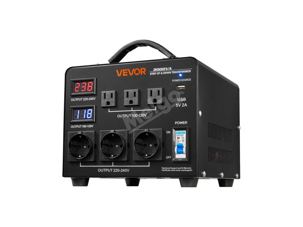 Menič napätia 3000 VA, 110↔220 V, 3×US a 3×EU zásuvky, lcd, s ističom
