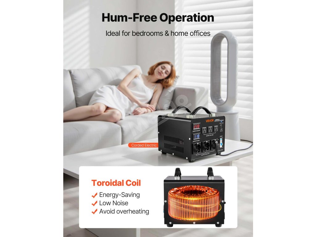 Odpoveď: Vo všeobecnosti tento menič napätia pracuje ticho. Ak spozorujete bzučanie alebo akýkoľvek nezvyčajný hluk, môže to znamenať problém so zariadením a odporúčame ho dôkladne skontrolovať.