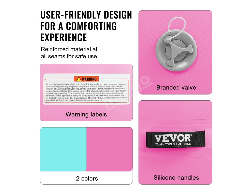 Tréningová podložka sa dodáva s elektrickou pumpou s výkonom 600 W. Nafúknutie alebo vyfúknutie trvá menej ako minútu, vzduchotesná je niekoľko dní. Dodáva sa so značkovým dverovým ventilom pre spoľahlivú kvalitu, viacerými tryskami a hadicami pre jednoduché používanie. úložné vrecko so šnúrkou 210D na ľahšie skladovanie.