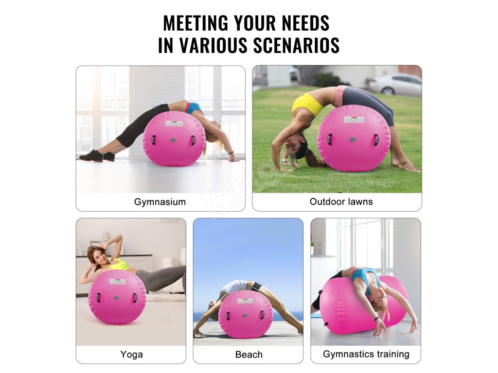 Viacúčelová podložka s rôznymi možnosťami, vhodná na akrobaciu, gymnastiku, jogu, umelecké aktivity atď. Okrem toho možno náš vzduchový valec používať na pláži alebo v bazéne - stačí sa vyhnúť ostrým predmetom.