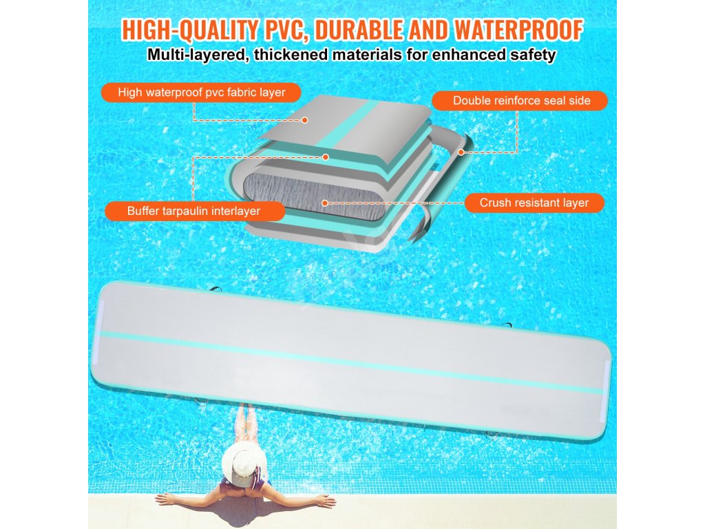 K dispozícii vo viacerých veľkostiach a farbách a ľahko sa montuje. Táto gymnastická vzduchová podložka je vyrobená z vysokokvalitnej PVC plachty pre zvýšenú odolnosť.