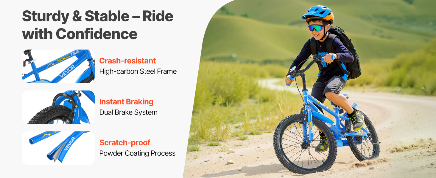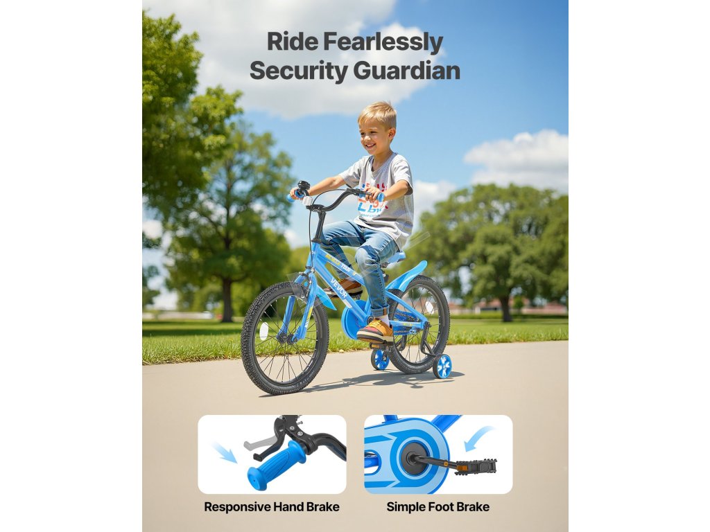 Vyrobený z vysokokarbónovej ocele pre dlhú životnosť. Dvojitý brzdový systém nášho detského bicykla je mimoriadne citlivý, čo zaručuje rýchle zastavenie bez prevrátenia. Pripravený na akékoľvek dobrodružstvo, nech je akokoľvek drsné!