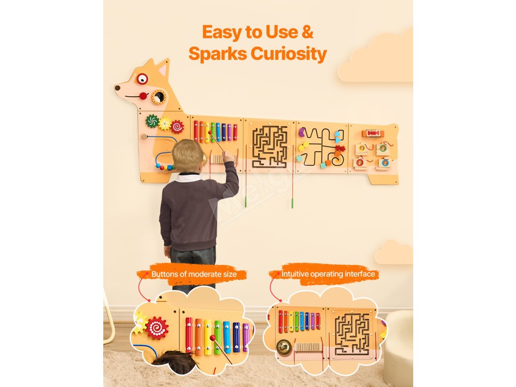 Podporte zvedavosť a učenie vášho dieťaťa pomocou tohto nástenného panelu s aktivitami inšpirovanými metódou Montessori! Náš nástenný panel s aktivitami podporuje skúmanie a zábavu prostredníctvom multisenzorickej hry, ktorá je ideálna pre rozvoj mladých myslí.