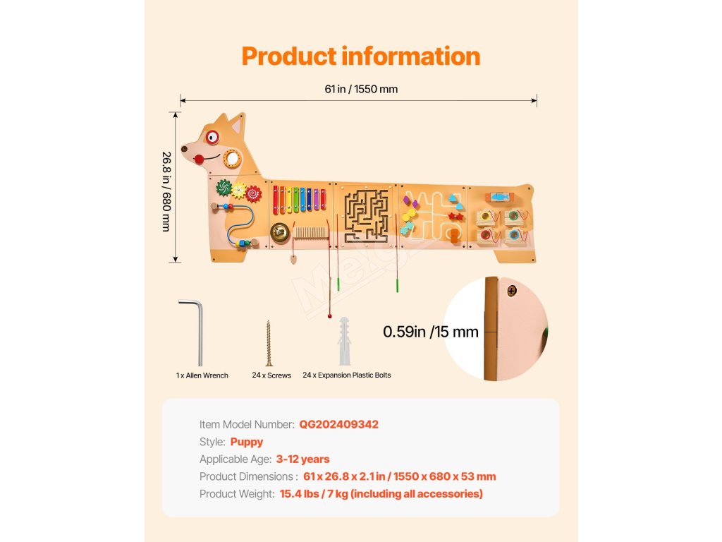 Tento panel na stenu aktivít busy board je vyrobený z hrubej MDF dosky, je odolnejší ako plast a je skonštruovaný tak, aby vydržal roky hry a rástol spolu s vaším dieťaťom bez toho, aby sa ľahko zlomil alebo vybledol.