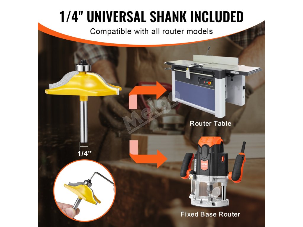 Naša súprava frézovacích bitov je ideálna na použitie na drevo, drevovláknité dosky strednej hustoty (MDF), drevotrieskové dosky, preglejky a kompaktné panely. (Upozornenie: Nie je vhodná na rezanie železných kovov alebo nedrevných materiálov, ako je oceľ, železo alebo piesok)