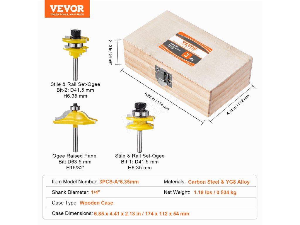 Obsahuje 3 rôzne frézovacie bity na opracovanie dreva, pričom každý bit je presne navrhnutý tak, aby vám poskytol presné tvary a profily, ktoré si želáte. Či už vytvárate zložité konštrukcie alebo jednoduché rezy, na každú prácu s drevom budete mať ten správny frézovací bit.