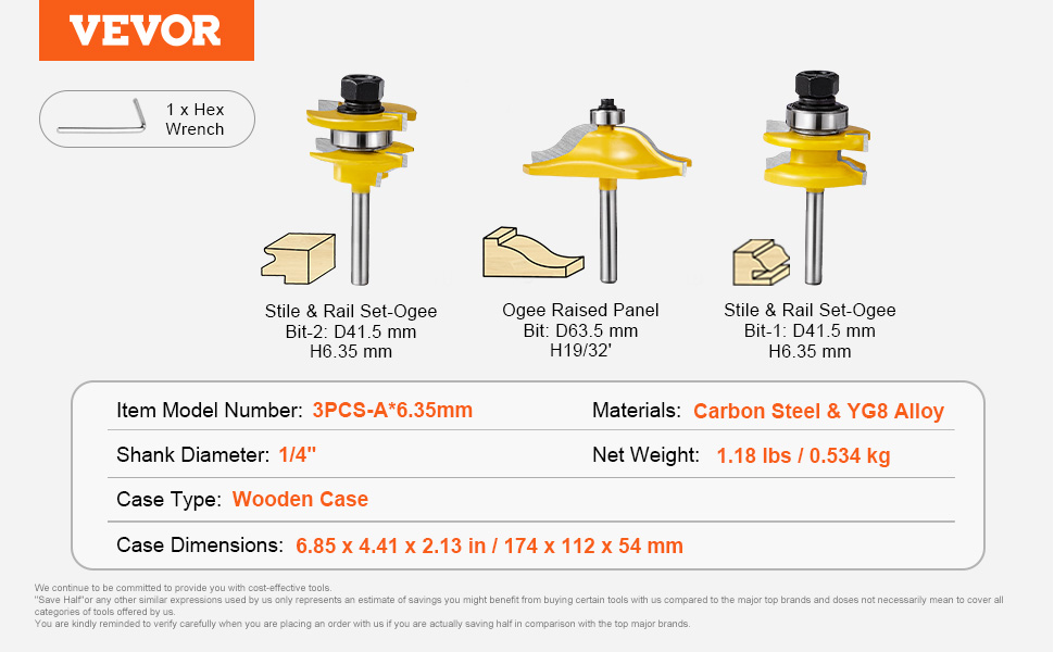 Obsahuje 3 rôzne frézovacie bity na opracovanie dreva, pričom každý bit je presne navrhnutý tak, aby vám poskytol presné tvary a profily, ktoré si želáte. Či už vytvárate zložité konštrukcie alebo jednoduché rezy, na každú prácu s drevom budete mať ten správny frézovací bit.