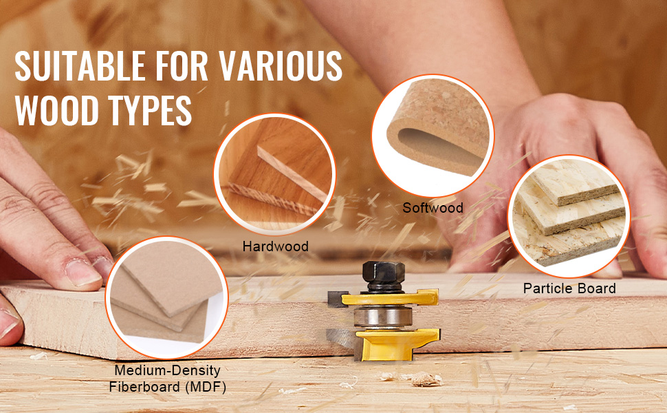 Naša súprava frézovacích bitov je ideálna na použitie na drevo, drevovláknité dosky strednej hustoty (MDF), drevotrieskové dosky, preglejky a kompaktné panely. (Upozornenie: Nie je vhodná na rezanie železných kovov alebo nedrevných materiálov, ako je oceľ, železo alebo piesok)
