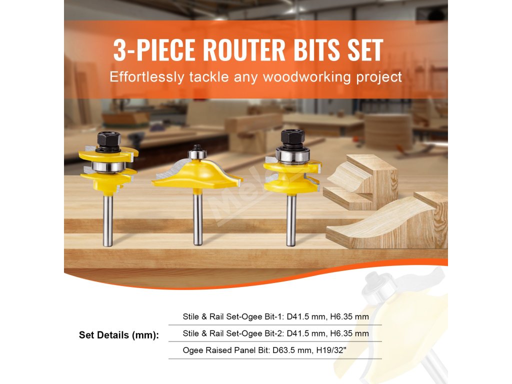 3-dielna súprava frézovacích bitov, Zlepšite svoje drevárske projekty