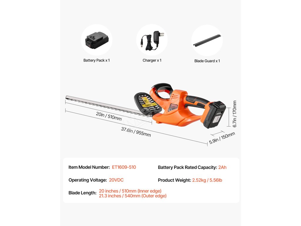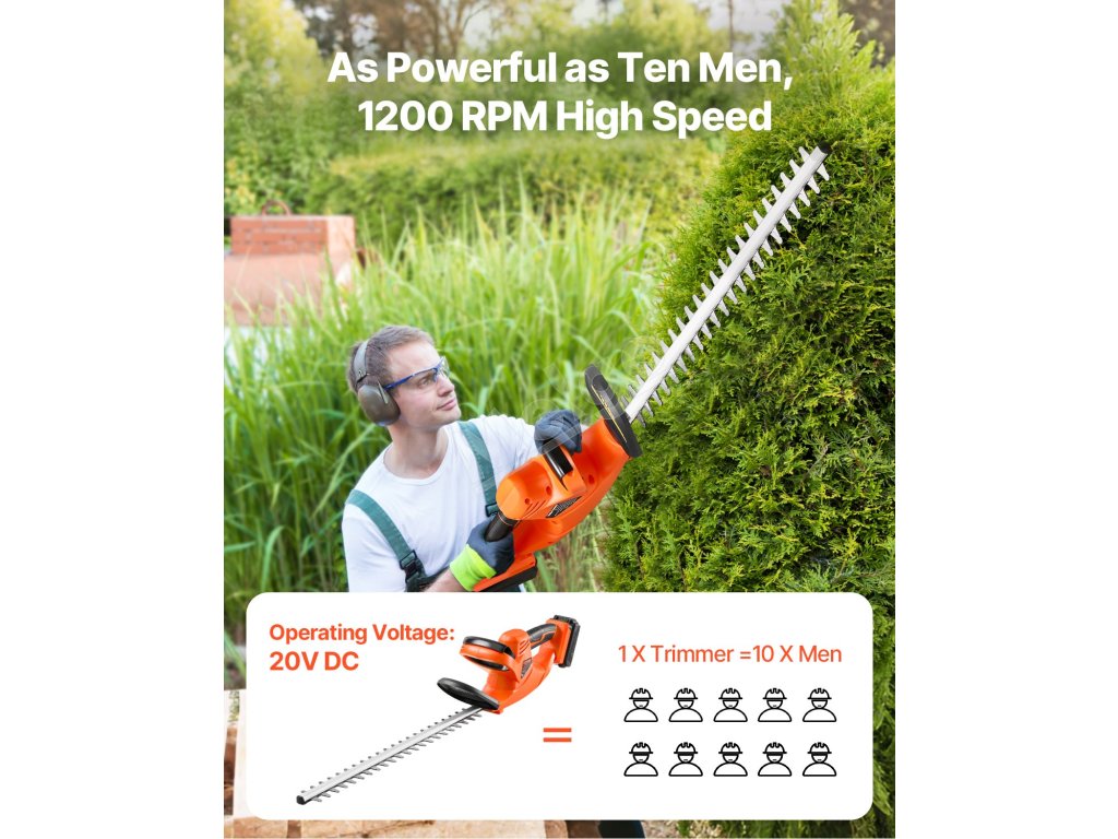 Akumulátorové nožnice na plot 20V 2A 1200 RPM, 20 in duálne čepele