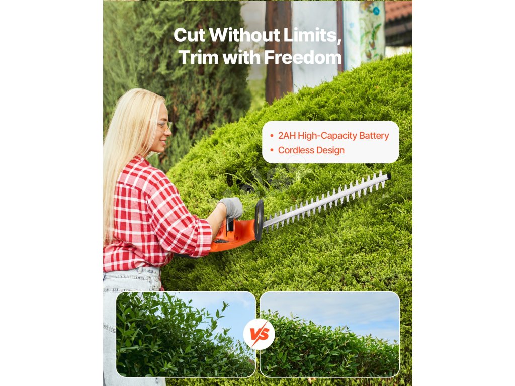 Akumulátorové nožnice na živý plot sú určené na efektívne zastrihávanie nízkych konárov bez námahy. Vďaka ľahkej, ergonomickej konštrukcii, funkciám dvojitého zabezpečenia a výkonnému 20-palcovému dvojčinnému nožu poskytuje rýchle a presné výsledky a pomáha vám ľahko udržiavať čistú a krásnu záhradu.