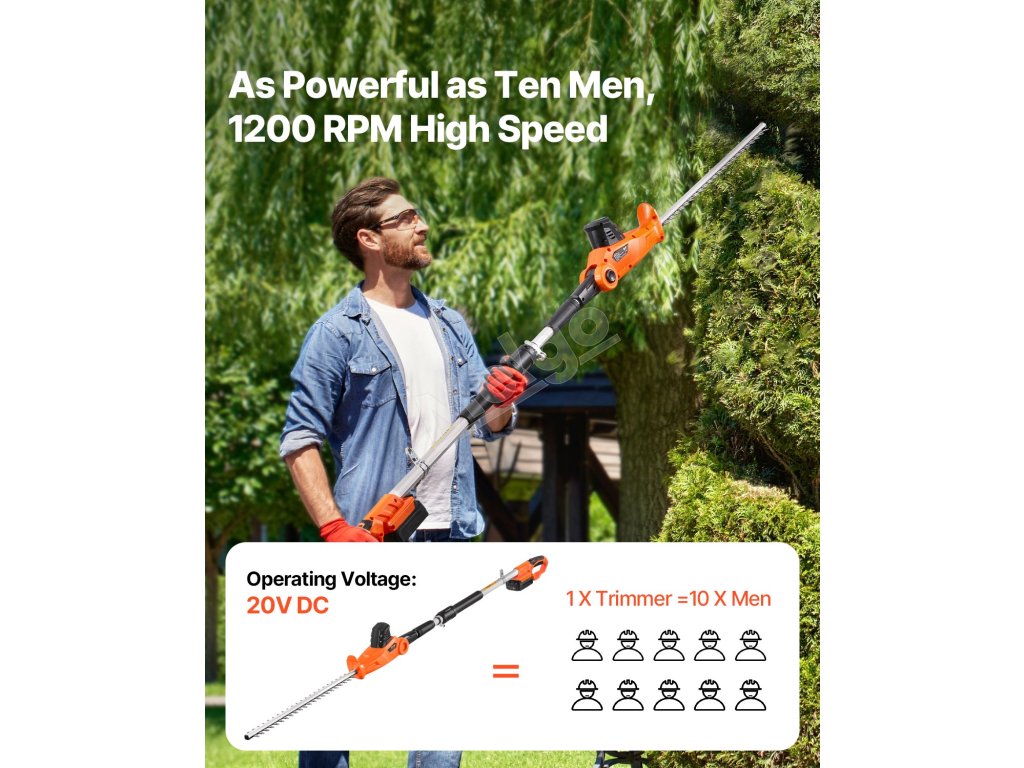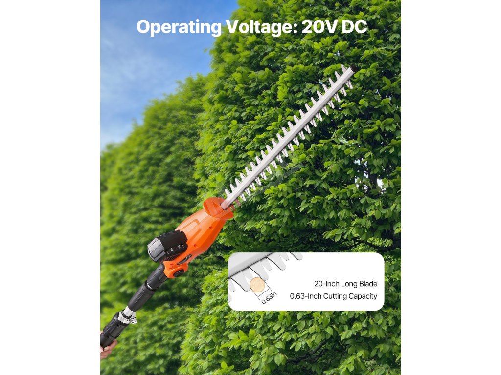 Tieto akumulátorové nožnice na živý plot sú vybavené 20-palcovou čepeľou a motorom s 1200 otáčkami za minútu, ktorý bez námahy strihá konáre až do veľkosti 0,63 cm. Vďaka teleskopickému dosahu 1,9-2,4 m a nastaviteľným uhlom umožňuje presné zastrihávanie. Vysokokapacitná batéria ponúka dlhotrvajúci výkon, zatiaľ čo dvojitý spínač zabezpečuje bezpečné používanie.