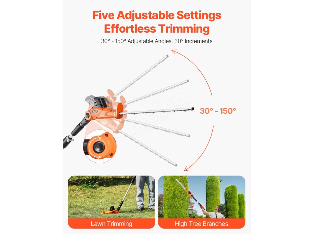 Vyskúšajte slobodu akumulátorového strihania! Vďaka 5 nastaviteľným uhlom a teleskopickej konštrukcii vám tieto vysoko výkonné nožnice na živý plot pomôžu bez námahy zvládnuť vysoké konáre a udržať vašu záhradu upravenú a krásnu.