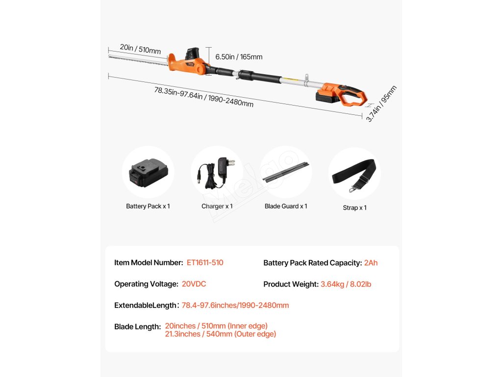 Elektrický tyčový plotostrih 20 v, 20 in čepeľ, 6.2-7.8 ft, 5 polôh