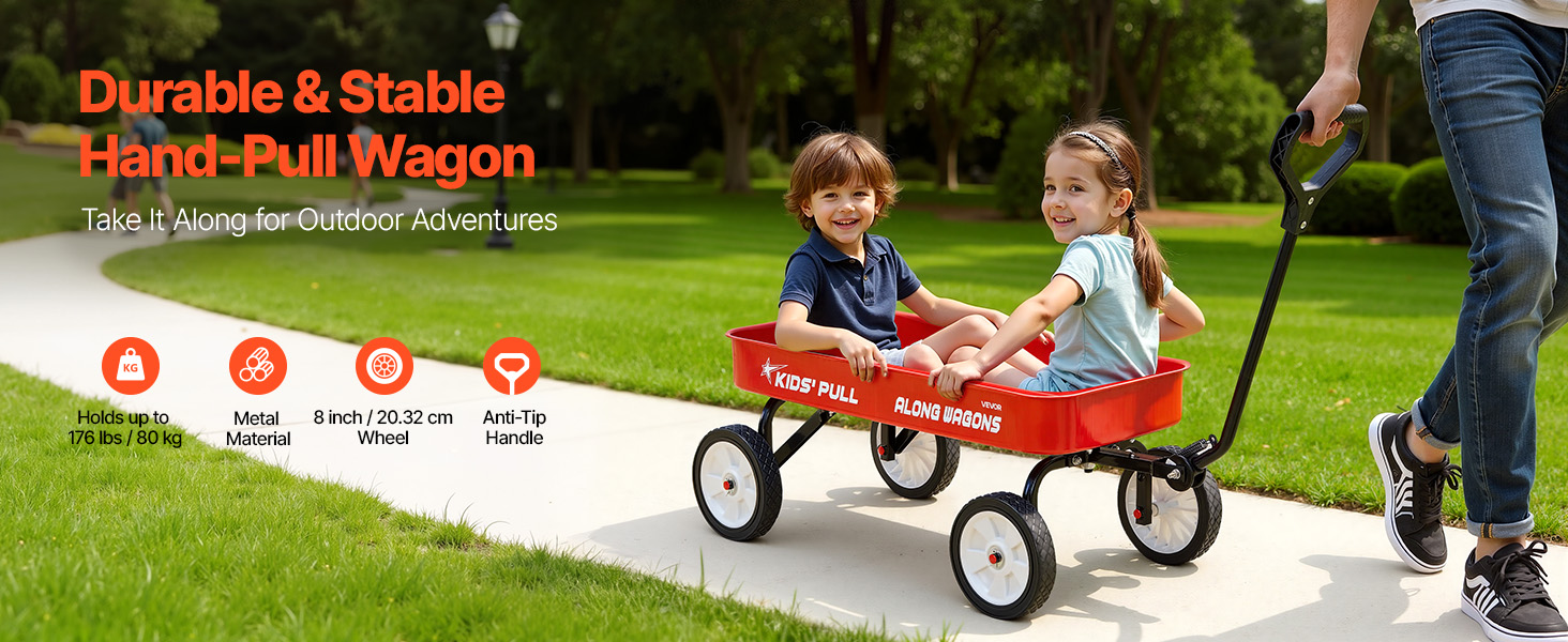 Tento ťahací voz pre deti má bezpečnú a stabilnú konštrukciu, ktorá umožňuje deťom jazdiť alebo prevážať kempingové vybavenie a outdoorové vybavenie. Jeho robustná a odolná konštrukcia zaručuje, že bude držať krok s detskými dobrodružstvami dlhé roky.