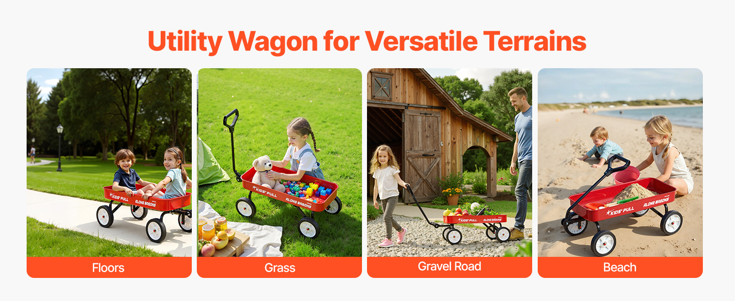 Tento terénny vozík pre deti je ideálny do rôznych terénov, hladko kĺže po podlahách v interiéri, po tráve na dvore, po vonkajších štrkových cestičkách a dokonca aj po piesočnatých plážach. Je ideálnym riešením na hranie aj prepravu predmetov v rôznych prostrediach.