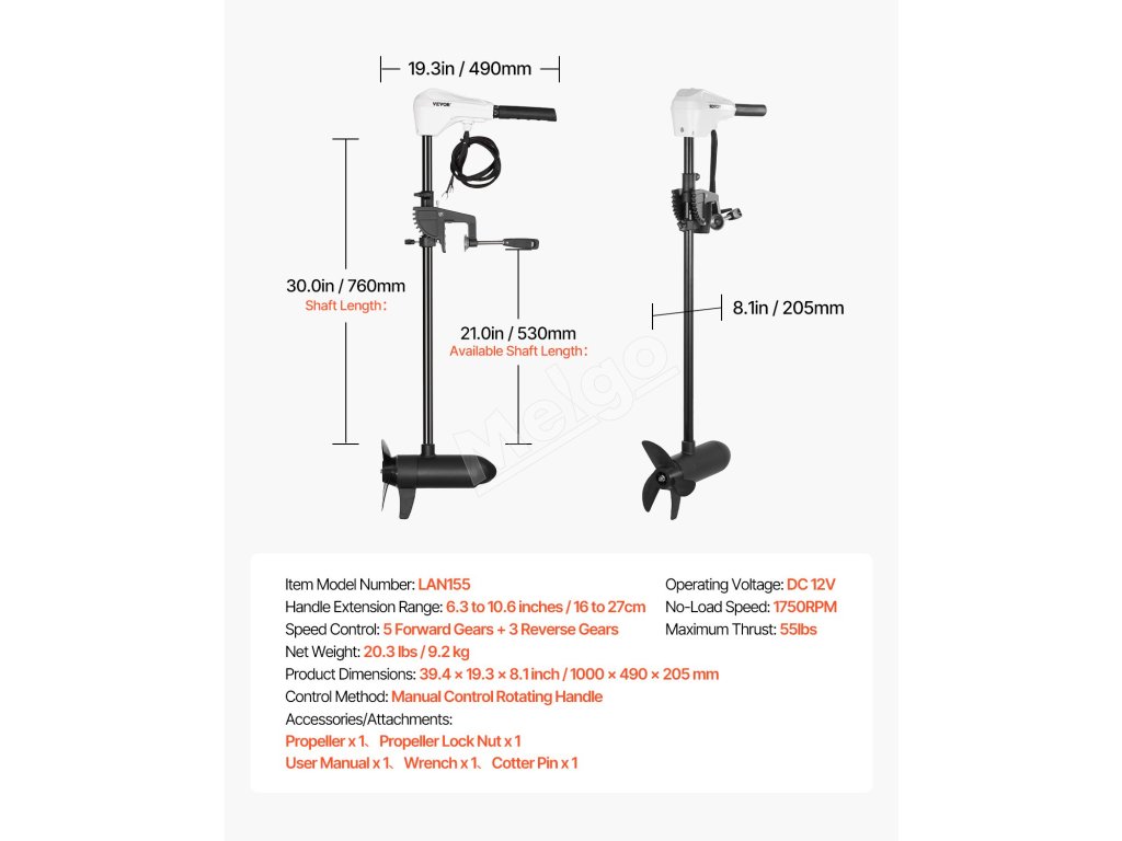 Elektrický trollingový motor pre člny 12V 55lbs ťah 8-stupňový 30-In