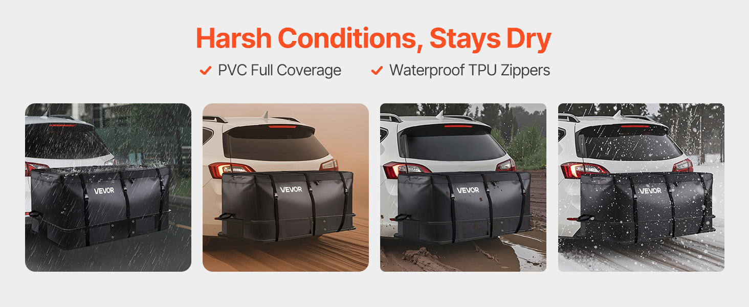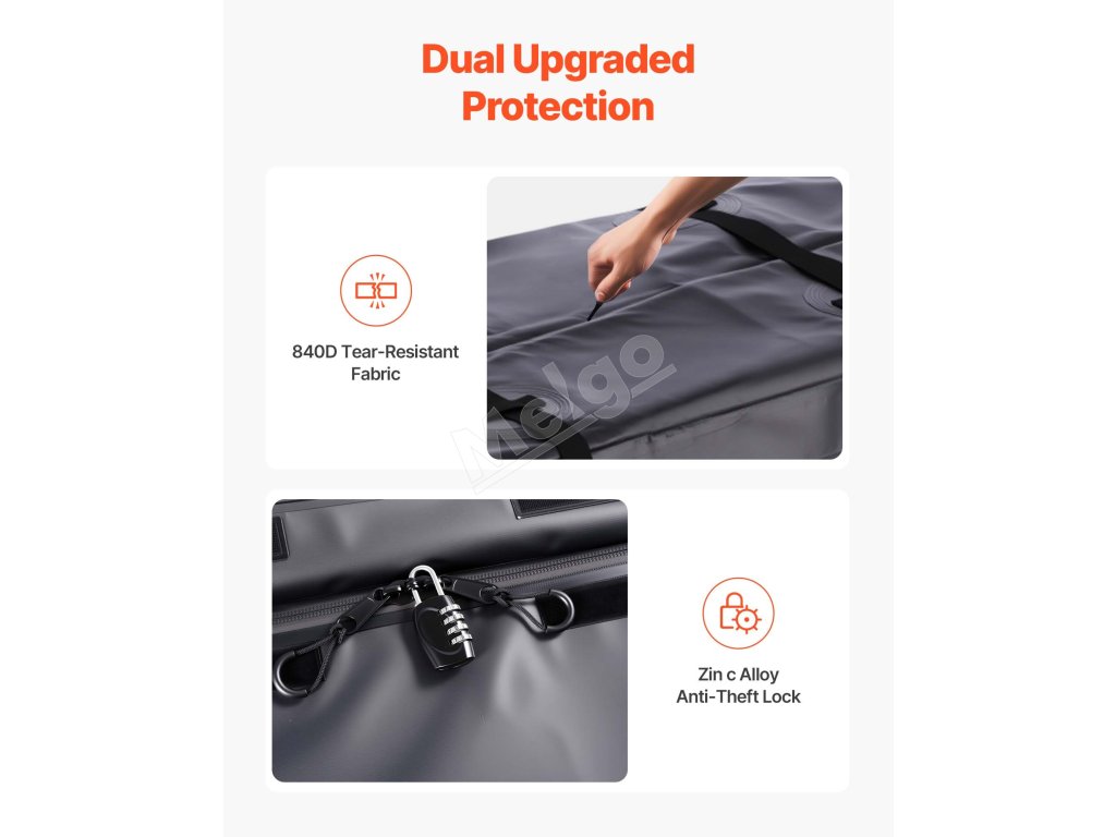 Táto prívesná taška na náklad je vybavená PVC materiálom a vodotesnými zipsami pre dvojitú ochranu, ktorá účinne blokuje dážď a udržiava oblečenie, dokumenty a citlivé vybavenie 100 % suché a nepoškodené.