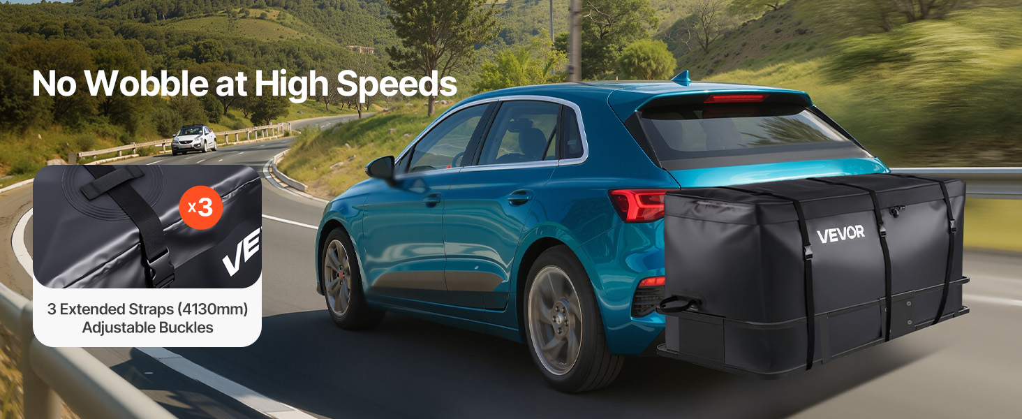 Naša prívesná taška je vybavená viacerými nastaviteľnými popruhmi, ktoré umožňujú jej pevné upevnenie na zadné nosiče automobilov alebo nosiče batožiny rôznych veľkostí a výšok, takže sa nemusíte obávať jej posunu počas nerovnej jazdy.