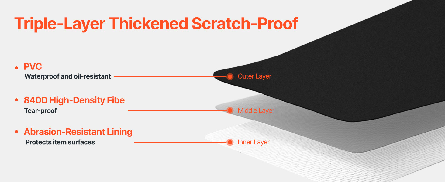 Táto taška na nosič nákladu má trojvrstvovú kompozitnú štruktúru s plným pokrytím PVC, vláknami s vysokou hustotou a podšívkou odolnou proti oderu, vďaka čomu je odolná a vodotesná a ľahko zvláda rôzne scenáre ťahania.