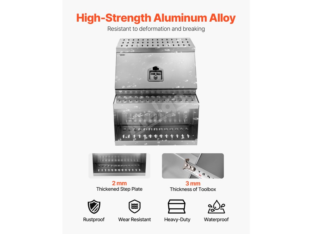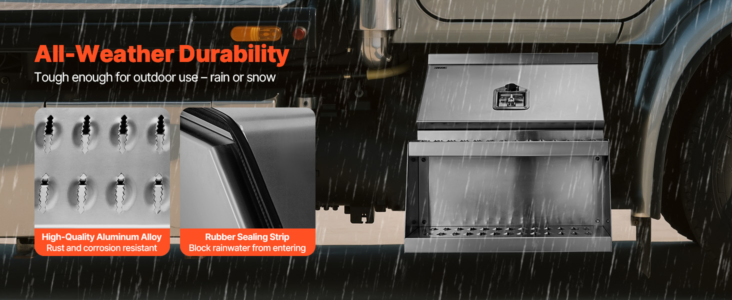 Vysokokvalitná konštrukcia z hliníkovej zliatiny ponúka vynikajúcu odolnosť proti korózii a hrdzi. A gumové tesniace pásy účinne blokujú vnikanie dažďa a prachu do boxu, čím udržiavajú náradie v bezpečí a suchu.