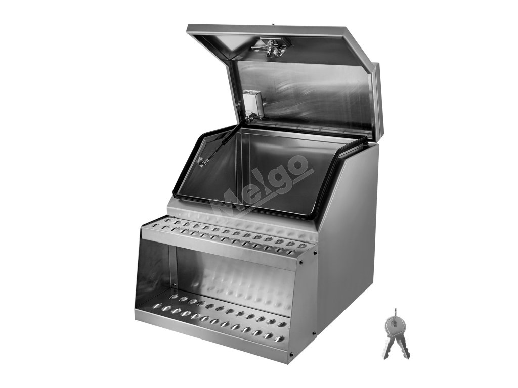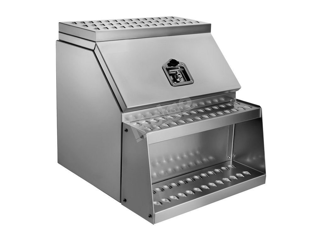 Bočná hliníková skrinka so schodom 610×695×645 mm, t-zámok a kľúče