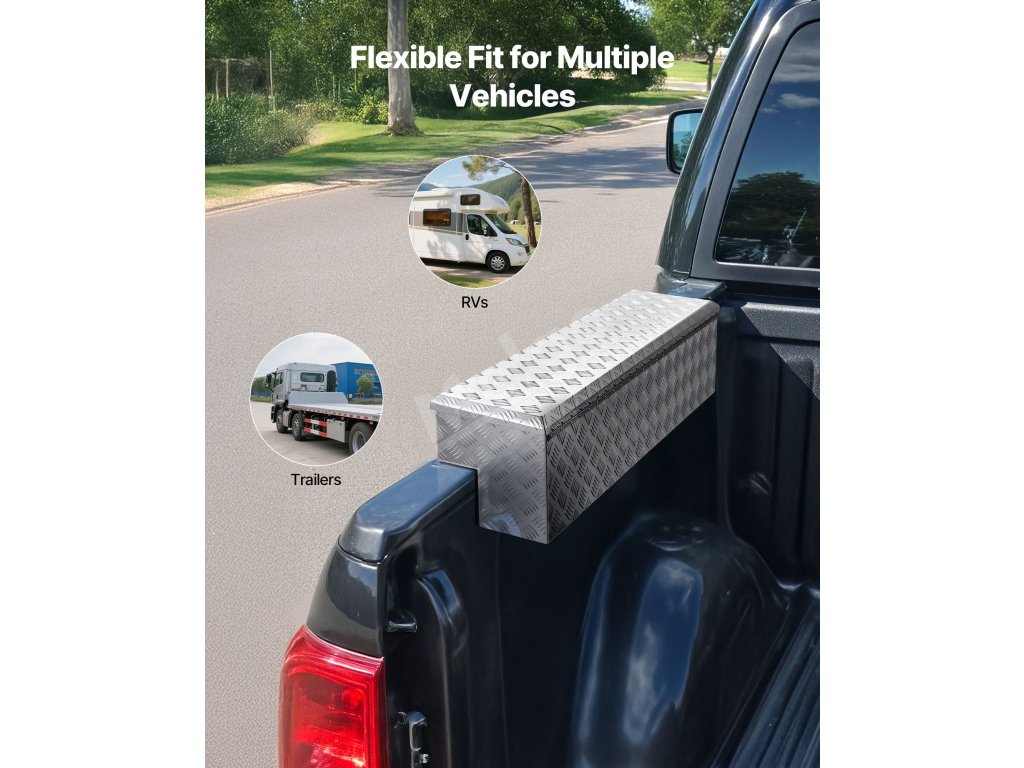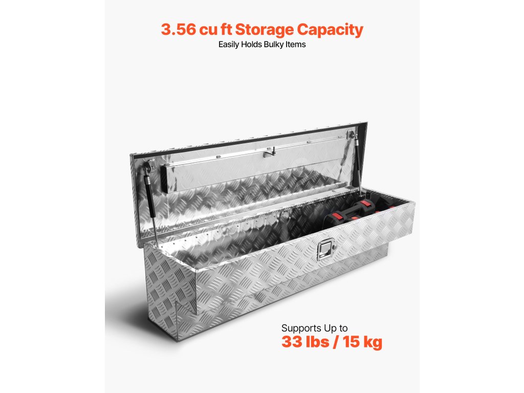 Tento box na náradie pre nákladné vozidlá má celohliníkový rám s úložným priestorom s objemom 3,56 cm3 (101 l) a schodiskovú plošinu s nosnosťou až 220 libier / 100 kg. Namontovaný na boku nákladného vozidla umožňuje rýchly a jednoduchý prístup k náradiu a predmetom bez toho, aby ste museli vstupovať do kabíny.