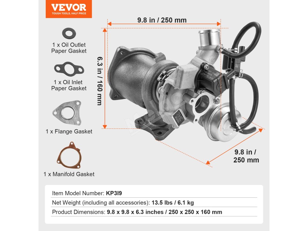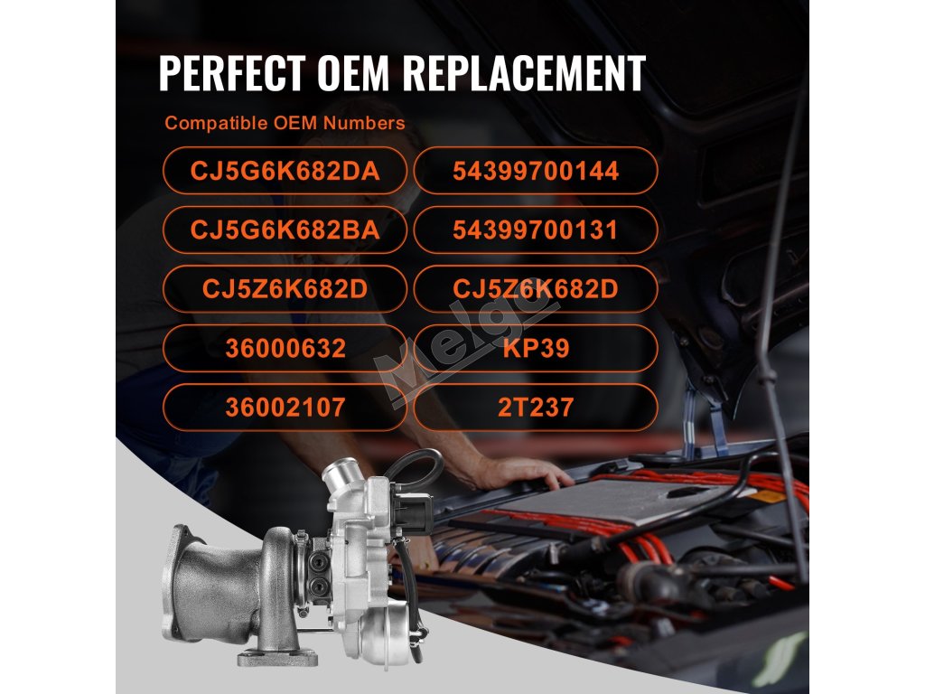Toto turbodúchadlo zaručuje dokonalú kompatibilitu a inštaláciu s originálnymi dielmi a nevyžaduje žiadne úpravy. Poznámka: Pred použitím namažte turbodúchadlo a tesnenia olejom. Dôrazne sa odporúča odborná inštalácia.